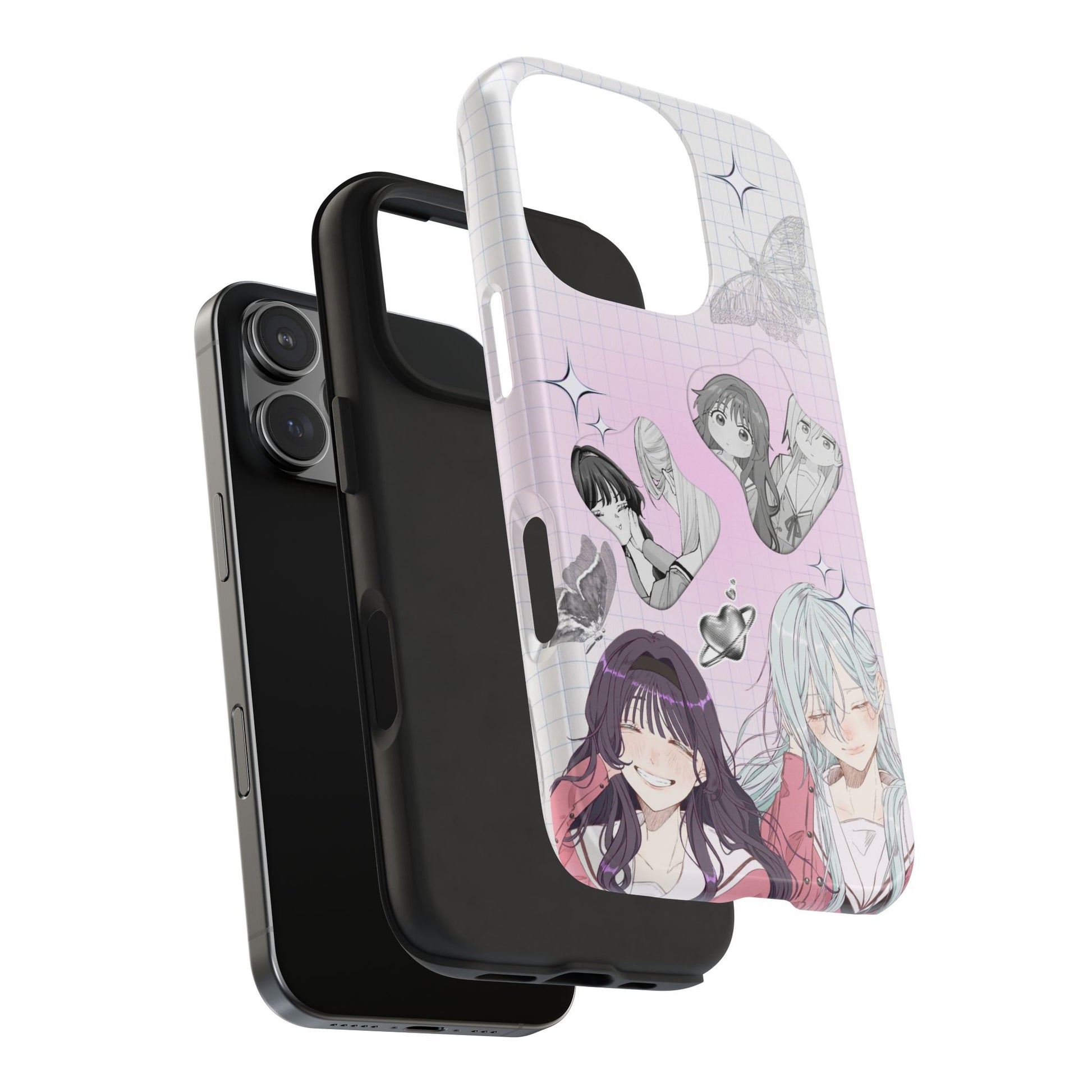 A slim, protective phone case that brings soft, nostalgic anime vibes to your everyday carry. The glossy print blends pastel pink gradients, hand-drawn character sketches, and delicate butterflies over a faint graph-paper background — like a page from a sketchbook come to life. The two-piece shell and cushioned rubber liner work together to absorb shocks while the lay-flat bezel helps keep your screen safe from scratches. Lightweight and wrist-pocket friendly, this case lets you carry a little daydream with you: giggles shared between friends, quiet afternoons sketching, and the faint sparkle of something just out of reach.